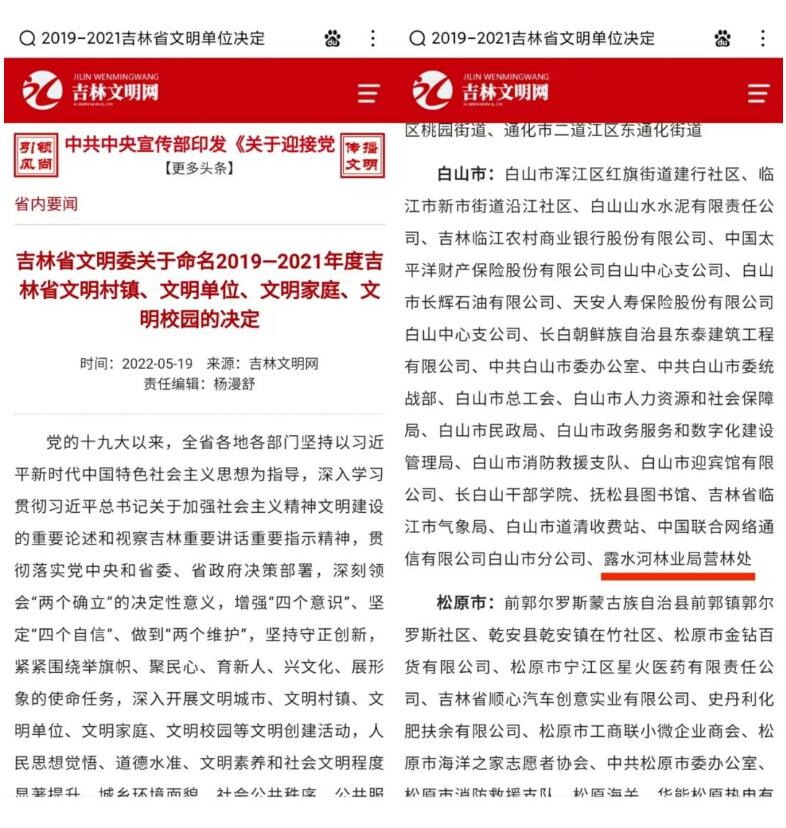 | 國家林業(yè)和草原局 吉林省人民政府 吉林省林業(yè)和草原局 中國吉林森工集團 白山市人民政府 吉林省長白山保護開發(fā)區(qū)管委會 撫松縣人民政府 松江河林業(yè)有限公司 三岔子林業(yè)有限公司 泉陽林業(yè)有限公司 露水河長白山國際狩獵場 |